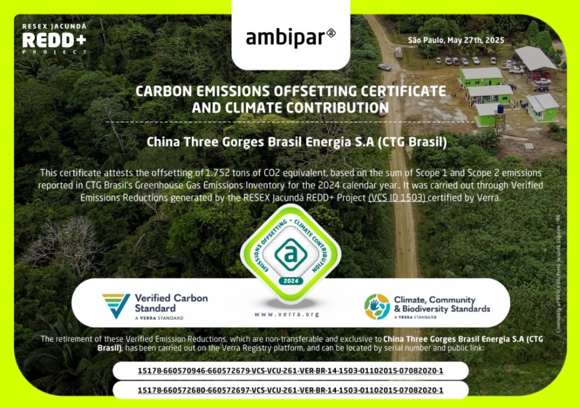 近日,三峽巴西公司連續第六年獲得碳中和認證,實現2024年度100%碳中和。同時,三峽巴西公司再度榮膺溫室氣體核算體系(“溫室氣體協議書”)金印章——這一巴西氣候管理領域的最高榮譽,充分展現了三峽巴西公司在溫室氣體排放量化、管理與信息披露方面的專業水準與高度透明。